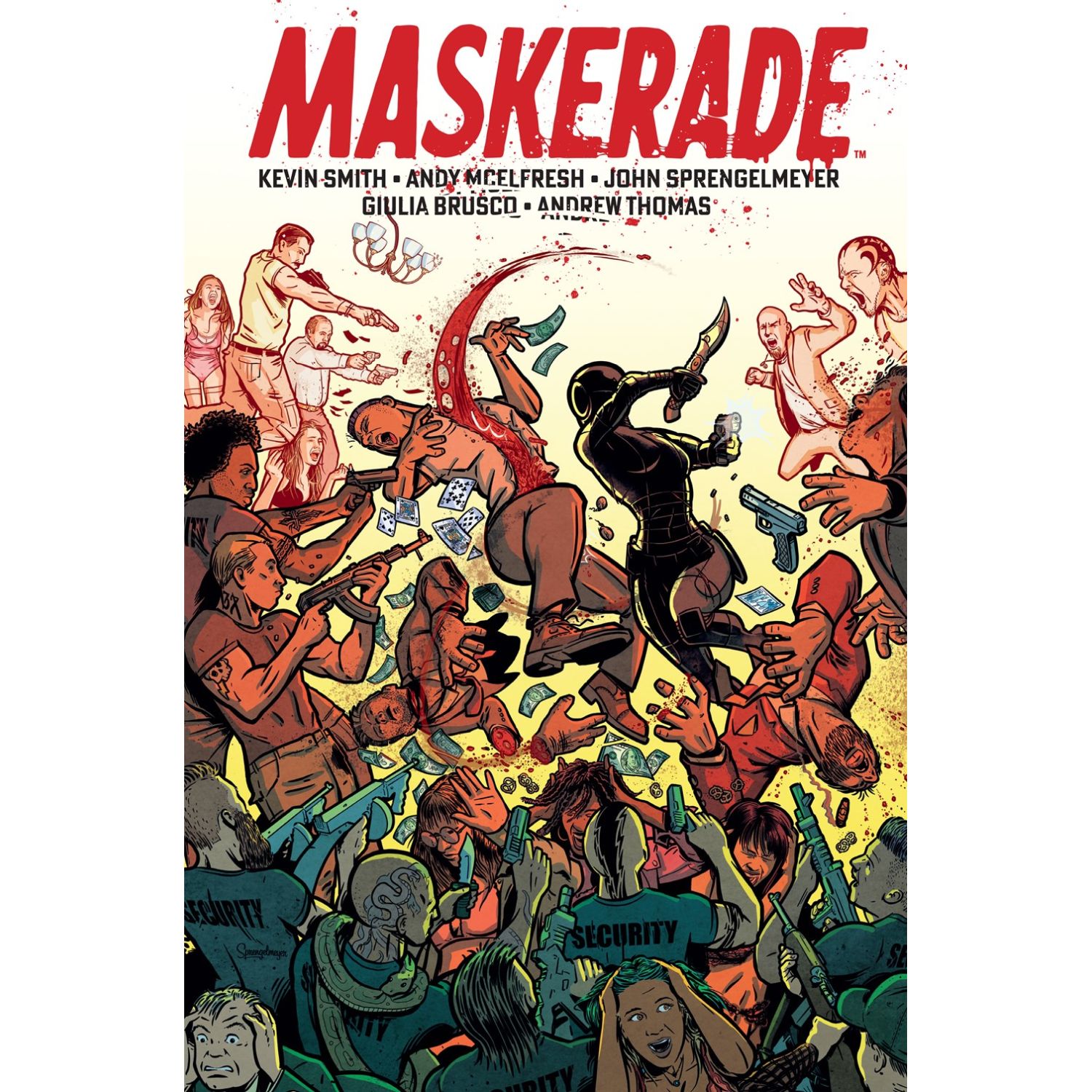 Felicia Dance is hiding in plain sight. The provocative social media star and shock TV sensation has one of the most recognizable faces in the world—so she can’t capture and kill the butchers who murdered her little brother and experimented on Felicia like a lab rat when she was a child. Not unless she looks like someone else. The face of justice is reshaped forever in Maskerade—an exciting new vigilante comic series from writers Kevin Smith and Andy McElfresh with artist John Sprengelmeyer.